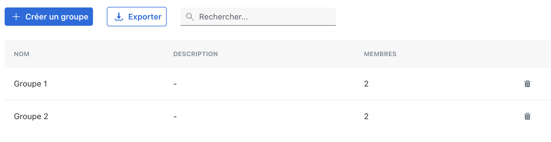 Vous pouvez retirer des membres du groupe en pointant le curseur sur leur ligne et en cliquant sur la corbeille qui s'affiche au survol.