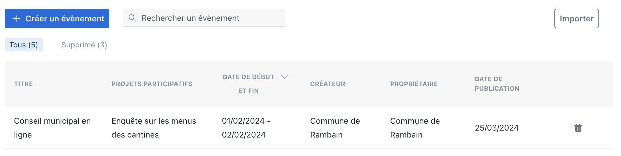 Pour communiquer sur les événements organisés autour de votre projet, vous pouvez créer des événements sur la plateforme et les afficher sur des étapes de vos projets participatifs.