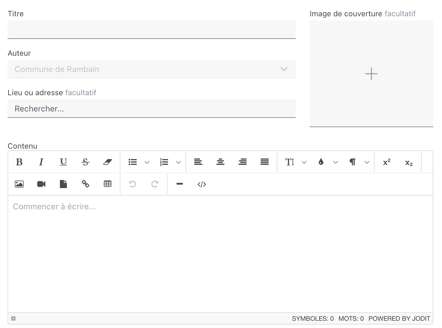 Donnez un titre à votre article puis sélectionnez son contenu dans le champ Contenu.