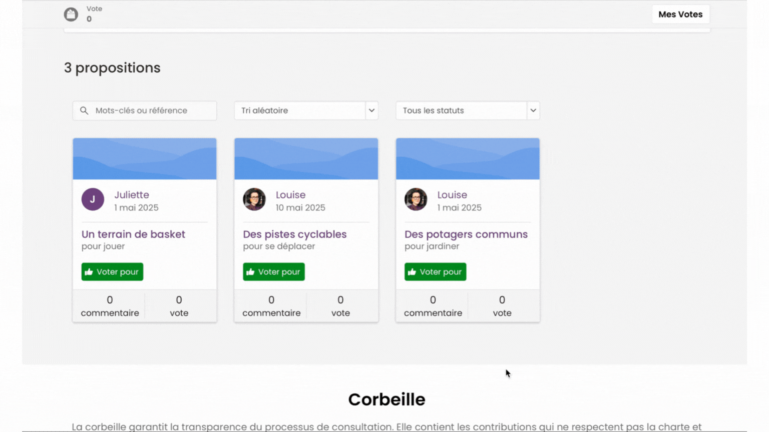 Le nouveau parcours de participation impacte les actions de vote (sur les étapes de dépôt ou de sélection) et de réponses à un questionnaire.
